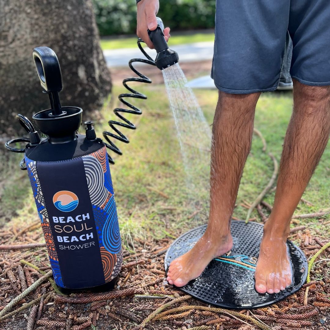 From Sandy to Sorted, Fast: This rinse-loving, gear-toting shower sidekick is made for beach exits, camp pack-downs, & post-adventure clean-ups — no soggy boots, no gritty toes, no fuss.